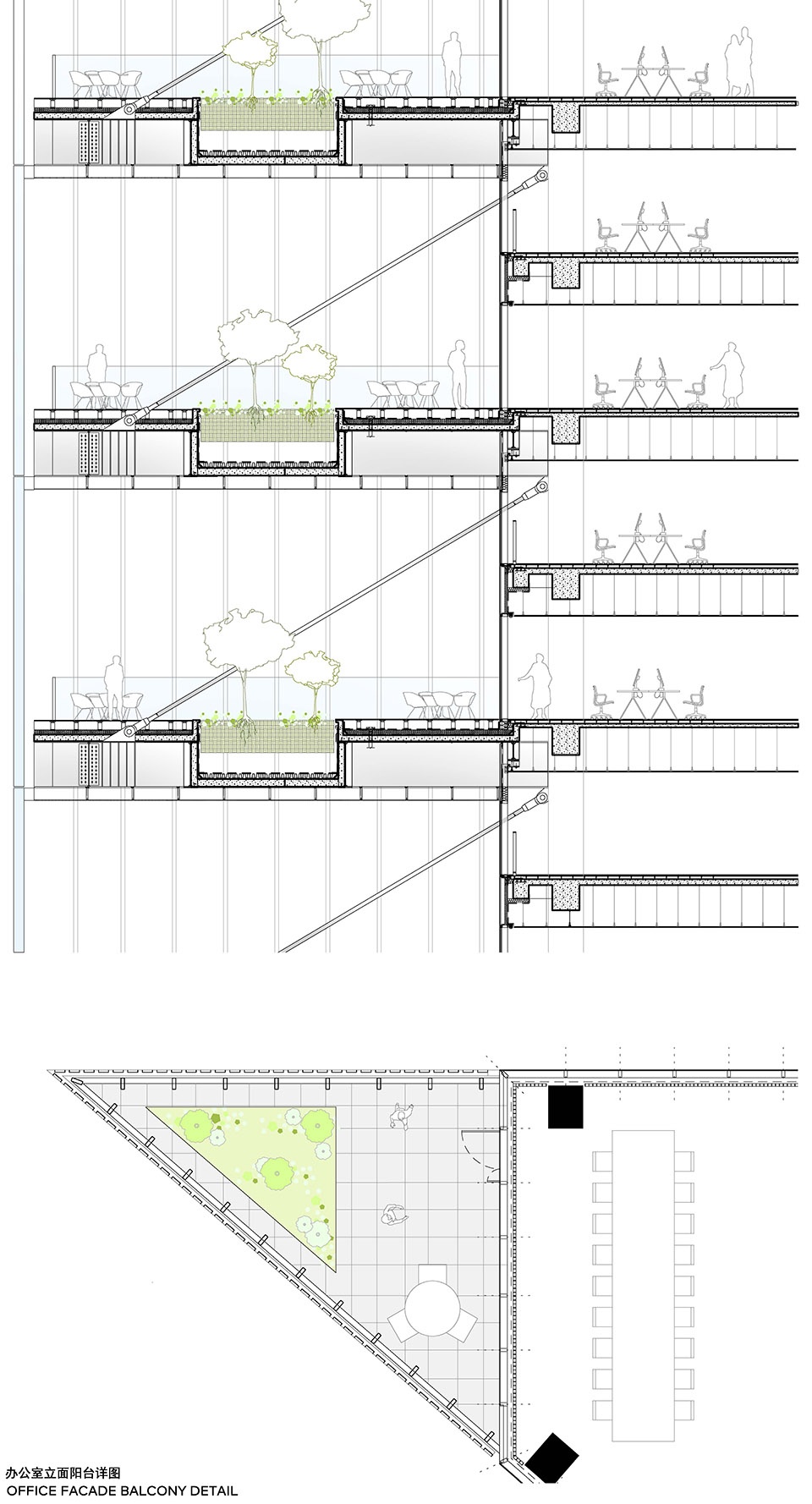 ▼办公室立面阳台详图,office balcony details ©CLOU