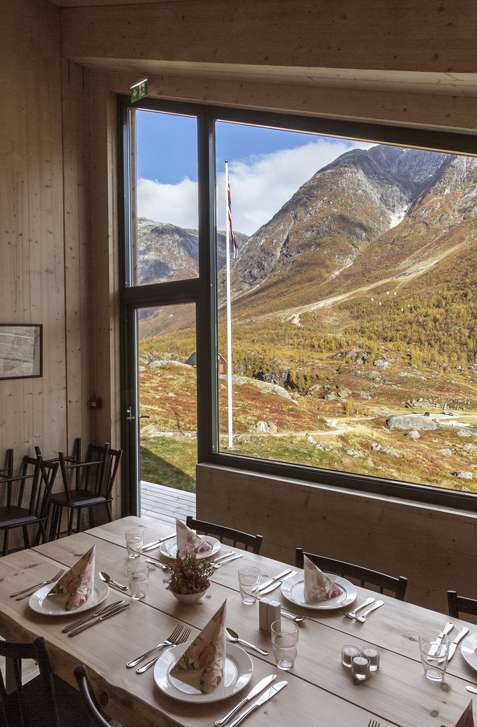 Surrounded by a dramatic landscape with steep mountains on all sides, Tungestølen serves as a perfect starting point for adept hikers who wish to conquer local glaciers in guided groups, but also for families with small children who wish to take shorter and less advanced hikes in the surrounding area. The cabin was officially inaugurated by Her Majesty Queen Sonja last fall and will open again for visitors when the hiking season commences in June.