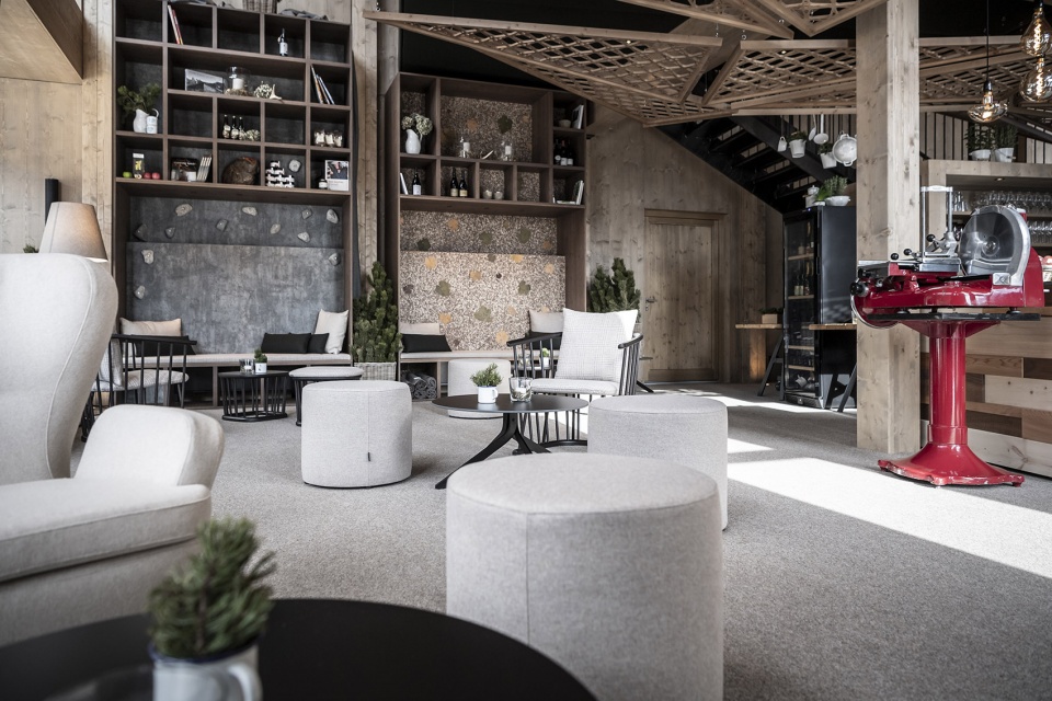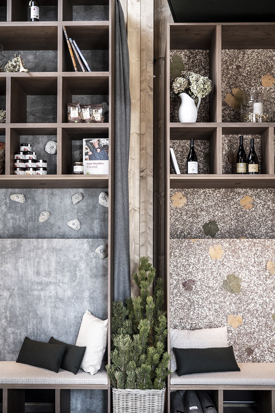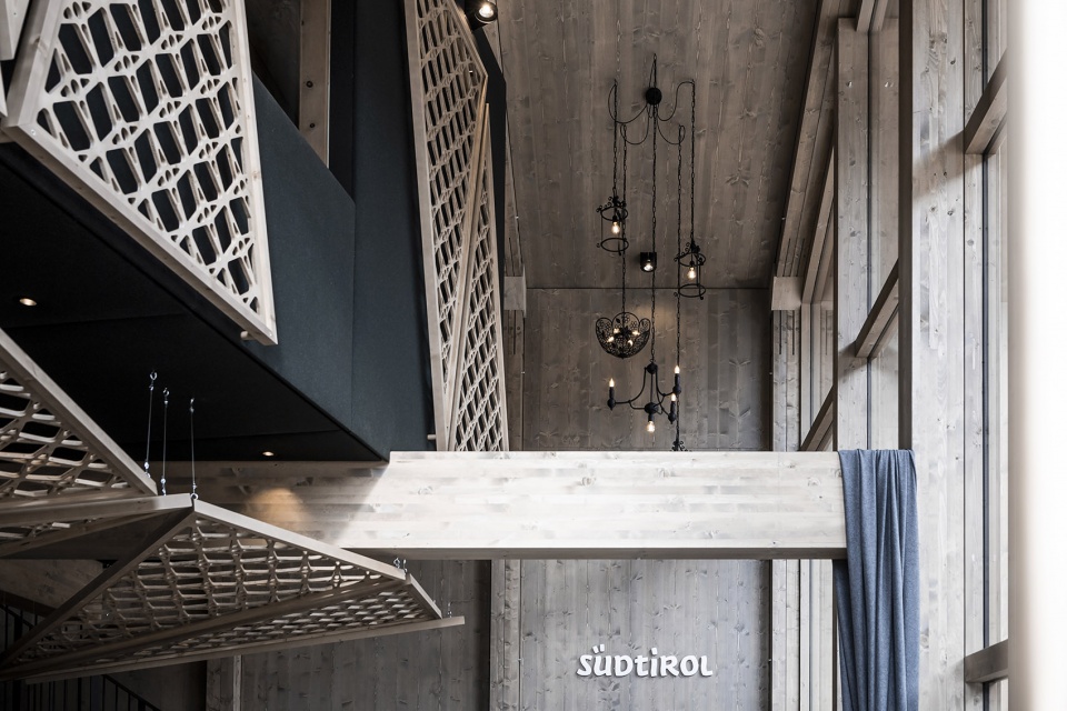 The initial idea of the design stems from the traditional card game “Watten” (card game), in which symbols of leaves, acorns, bells and hearts characterise the main roleplayers. These four represent the conceptual guidelines that pervade all areas of the interior. The leaf stands for the natural and cultural landscape, the acorn symbolizes the way of life and the quality products, the bell in turn indicates opening and innovation and finally the heart expresses conviviality, hospitality but also tradition and association. All of these elements correspond to the nature of South Tyrol and can be seen in a variety of precise creations.