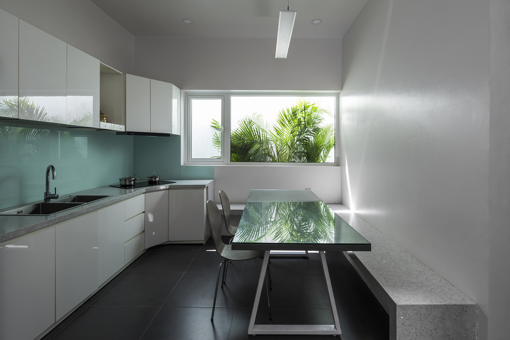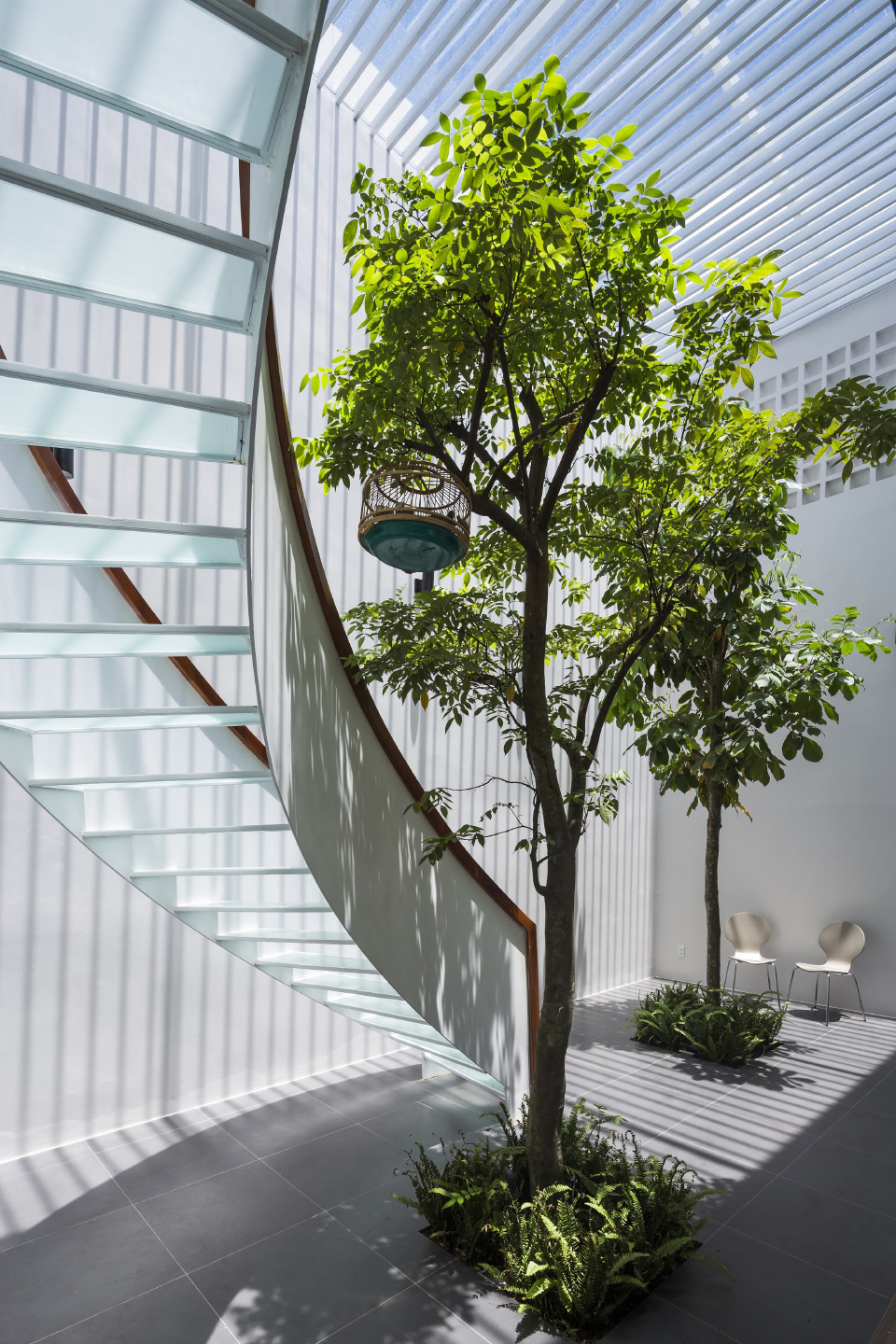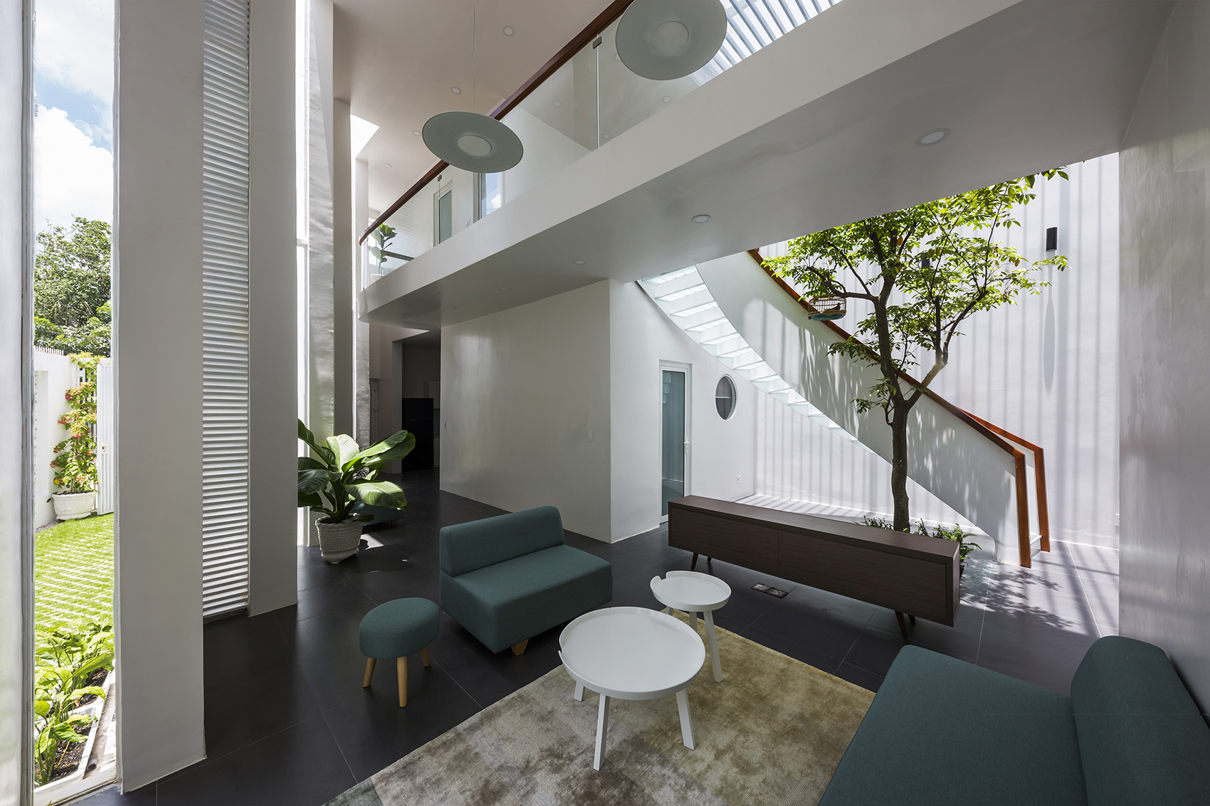 The project was created by two blocks stay about two corners of the house, two void spaces between two functional blocks, combining garden and common activities to ensure that all spaces are illuminated by natural light.