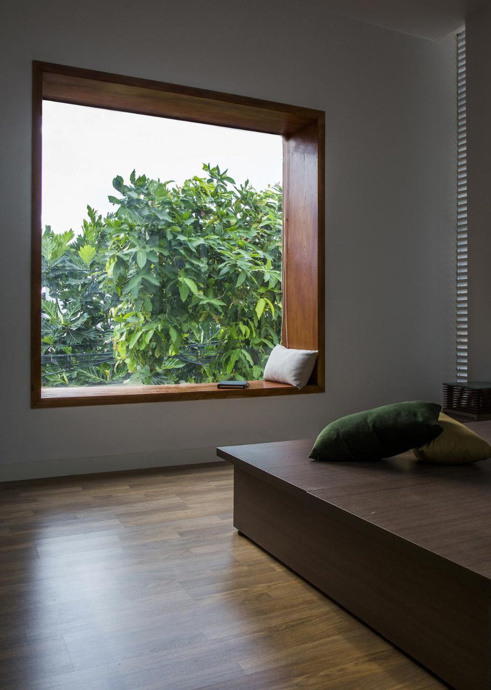 Like many other countries in the world, Vietnam is being affected by Global Warming. Natural disaster happens more often, temperature and air pollution increase. (A report in Ho Chi Minh City, the city next to Binh Duong, in 2016-2017 there was 27% time of the day, AQI (Air Quality Idex) was over 100). People in large cities in Vietnam suffer not only from the environmental population and lacking of green spaces (tree density in HCMC 2018 was at 0,69 sqm/person), but also from the pressure of urbanisation, so that their metal and physical health are not so good. From there, spending time with family and keeping in touch with others seem to be forgotten.To improve the habitat and make the connection between members in family better is the beginning of solving bigger urban issues. T-House was built in Binh Duong for a three generation family. The owner shared that she has been afraid of being alone, she would like everyone in the family could easily see each other when staying at home.