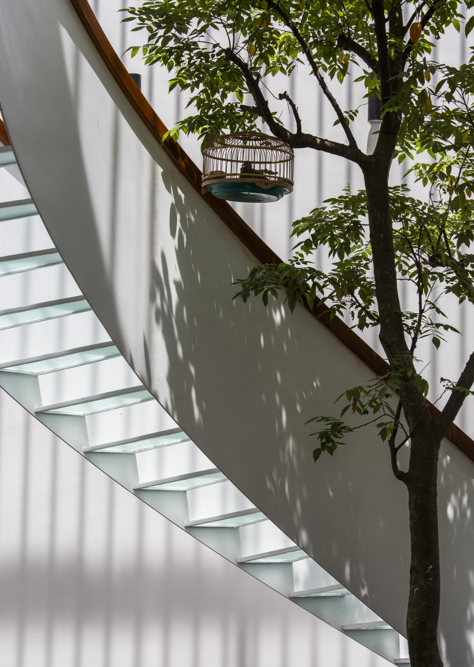 ▼花园里通向二楼的楼梯,the stair leading to the first floor in the garden © Hiroyuki Oki