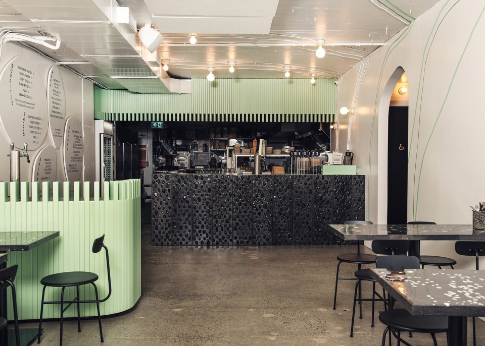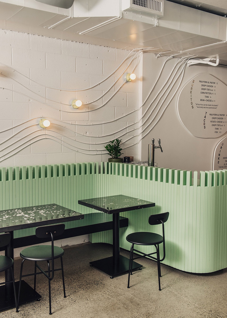 September事务所近日为Tacofino餐厅设计了其位于温哥华西街4号的最新分店,将一个次要的街道层空间改造为令人耳目一新的用餐空间。
