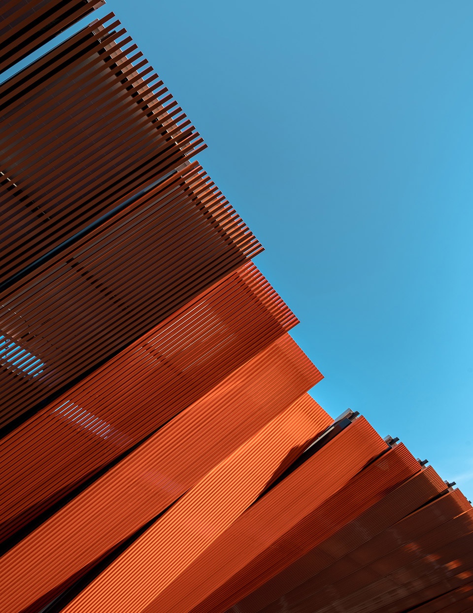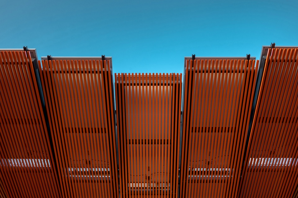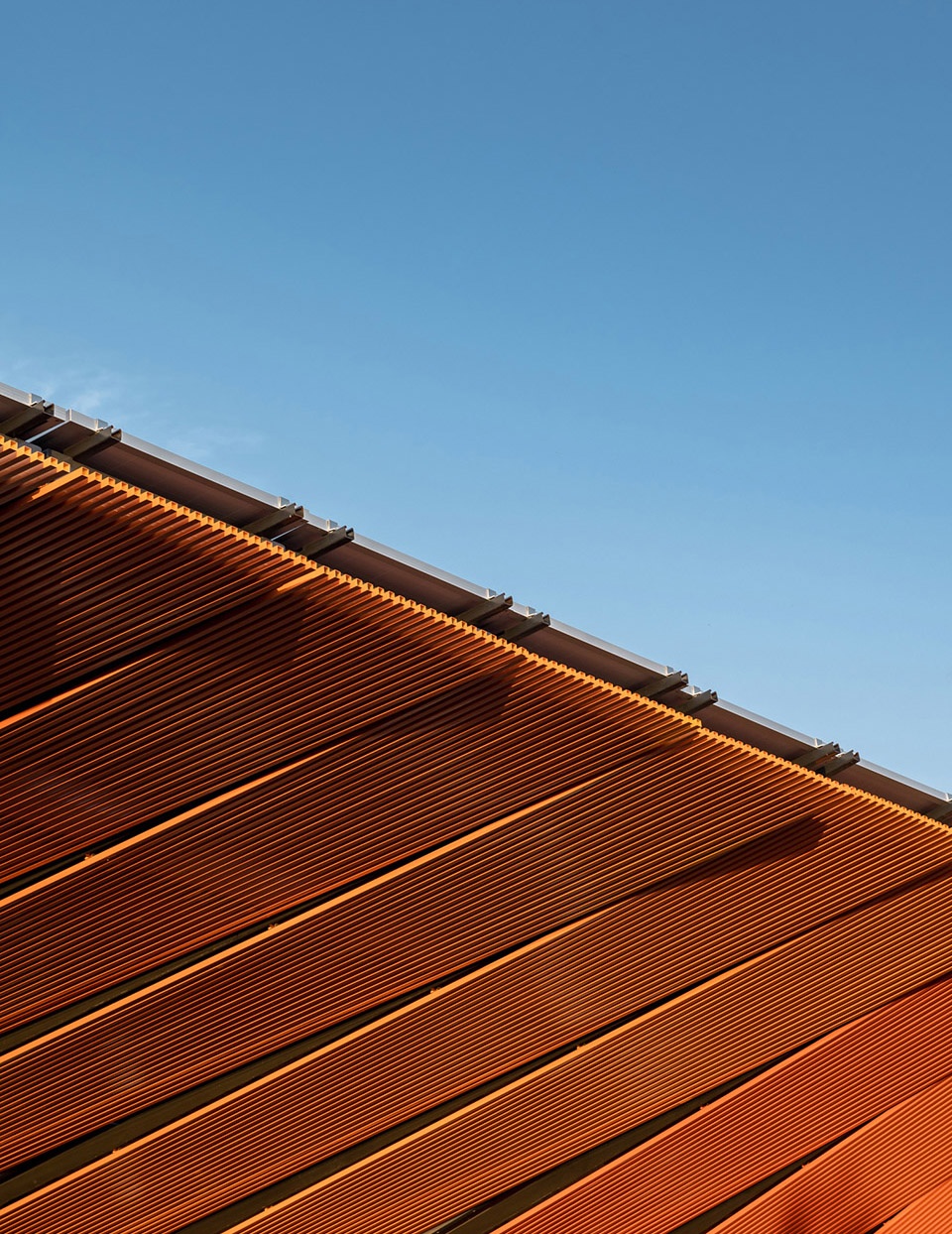 ▼装置底部采用代表公司的赤陶橙色,the soffit of the installation using terracotta orange to represent the company