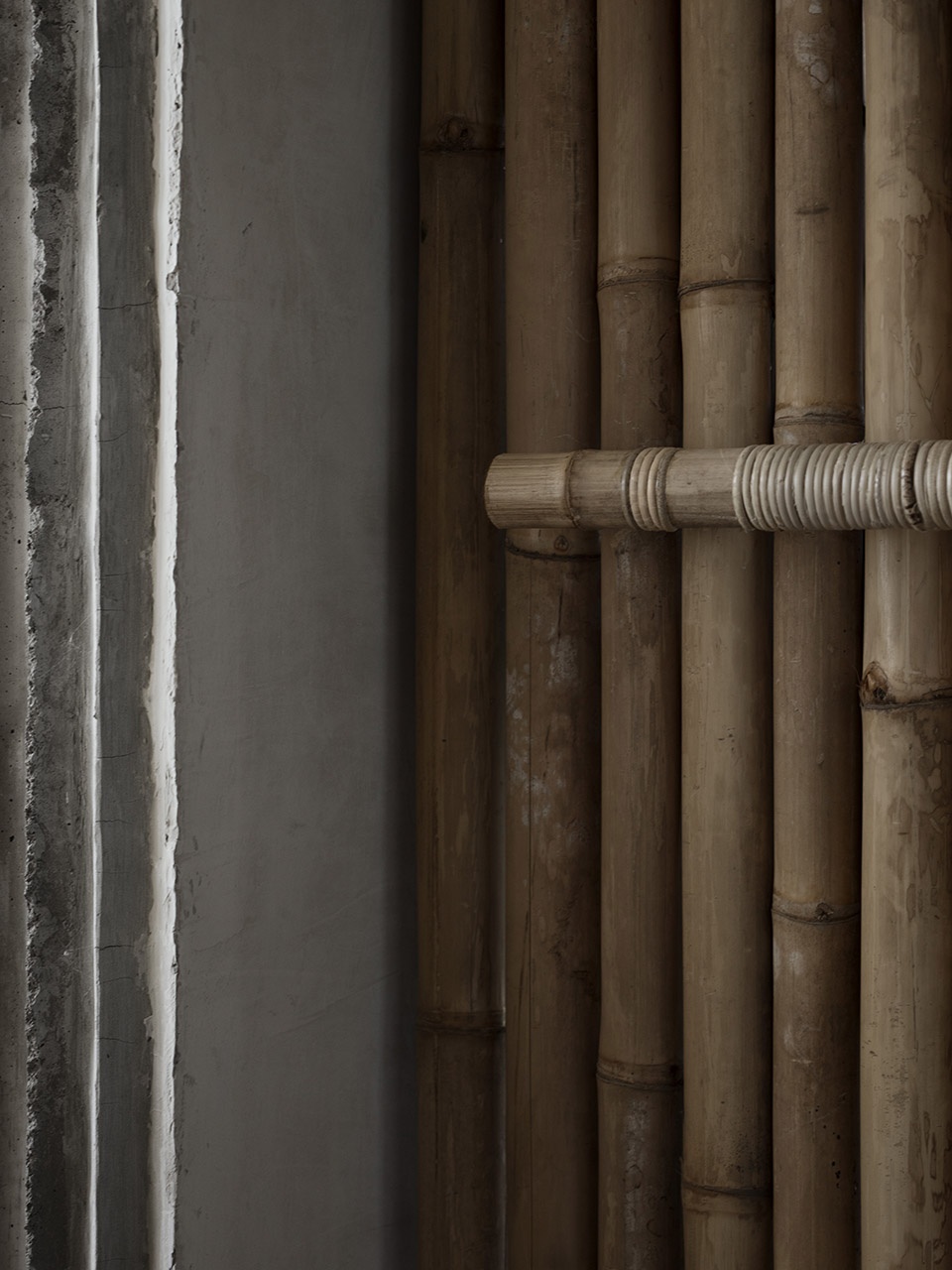 竹子和混凝土被用于创建所有的元素。拥有竹子肌理的混凝土墙构成了建筑的主要形态;竹子本身被用于大门、百叶窗和入口凉亭;此外还有回收的竹制框架作为环绕场地的藩篱。