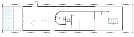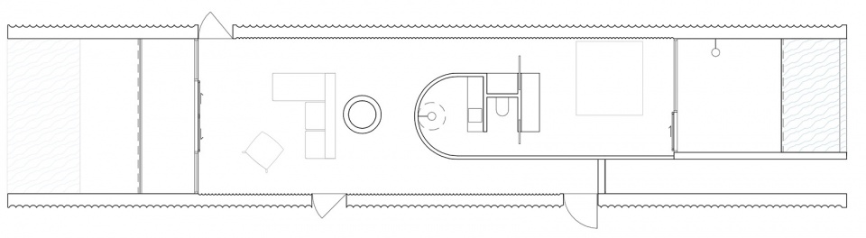Hidden centrally in the plan is the washing space. This is a rare moment of slick finish in an otherwise unadorned project. Each space has a light well, connecting the occupant back to the sky from the darkness of this isolated space. Protected, hidden, and central, this space becomes a welcome surprise, a place of refuge and delight. This is a place for unwinding reconnecting to the self and to nature.