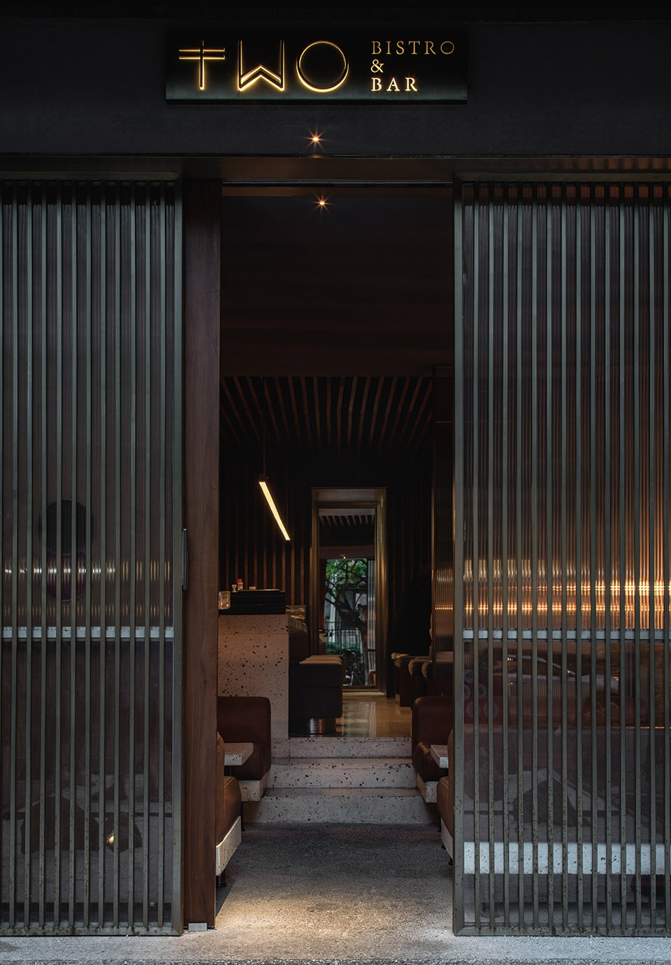 「TWO BISTRO & BAR」外在雕饰的质感,包裹着静谧空间的内在,同时衬托着品牌内涵丰富的核心。就像精致的TAPAS,每道都有独特之处,口味层次丰富;也如一杯好年份的日本威士忌,味道内敛而有趣。