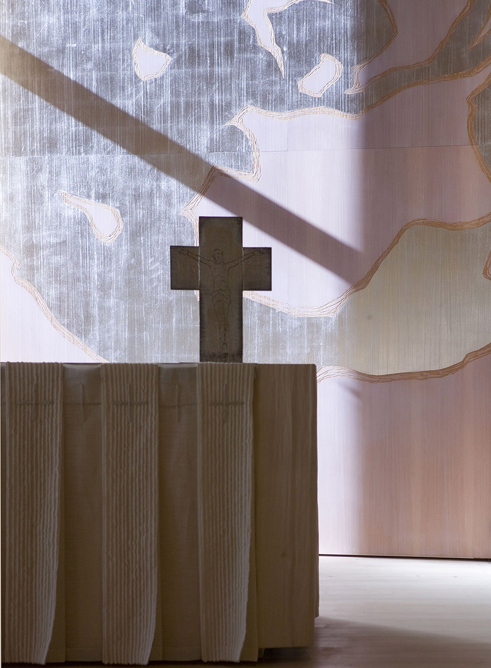 ▼银色“蚀刻”祭坛画效果,silver etching above the altar ©Arno de la Chapelle