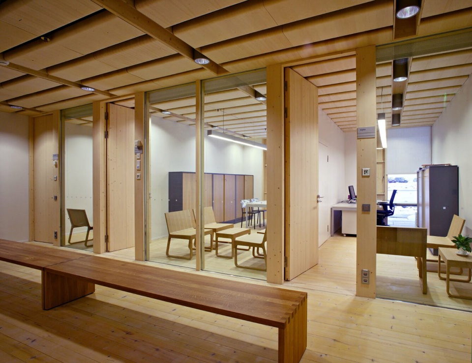 In order for us to realistically and cost-effectively achieve this project’s architectural objectives, the building needed to be thought out from start to finish in order to facilitate pre-fabrication. The objective was to effortlessly integrate the pre-fabricated components with each other into an architectural entity. The production of reasonable product parts guided the architectural choices. On the other hand, architectural objectives can be placed ahead of structural efficiency in reasonable amounts in high-quality trial projects on wooden construction. This allows us to try out new implementation methods with an open mind.