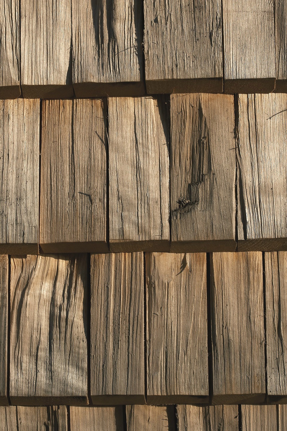 The panels act as a base for the internal cladding of the walls and as braces for the insulation in the roof. In addition, they also contribute to thermal insulation as they are made of wood. The bracing panels are part of the wall’s structure and not a separate component, whose only function is bracing. A model wall has been built on the property also to monitor ageing of the shake cladding during the construction period. The trial shake wall has successfully turned grey over the last 18 months. The cellular structure of the shakes has been preserved when splitting the shakes, which gives it a durable façade surface. One of the features of aspen is that its cellular structure hardens, which is why its surface glistens beautifully.