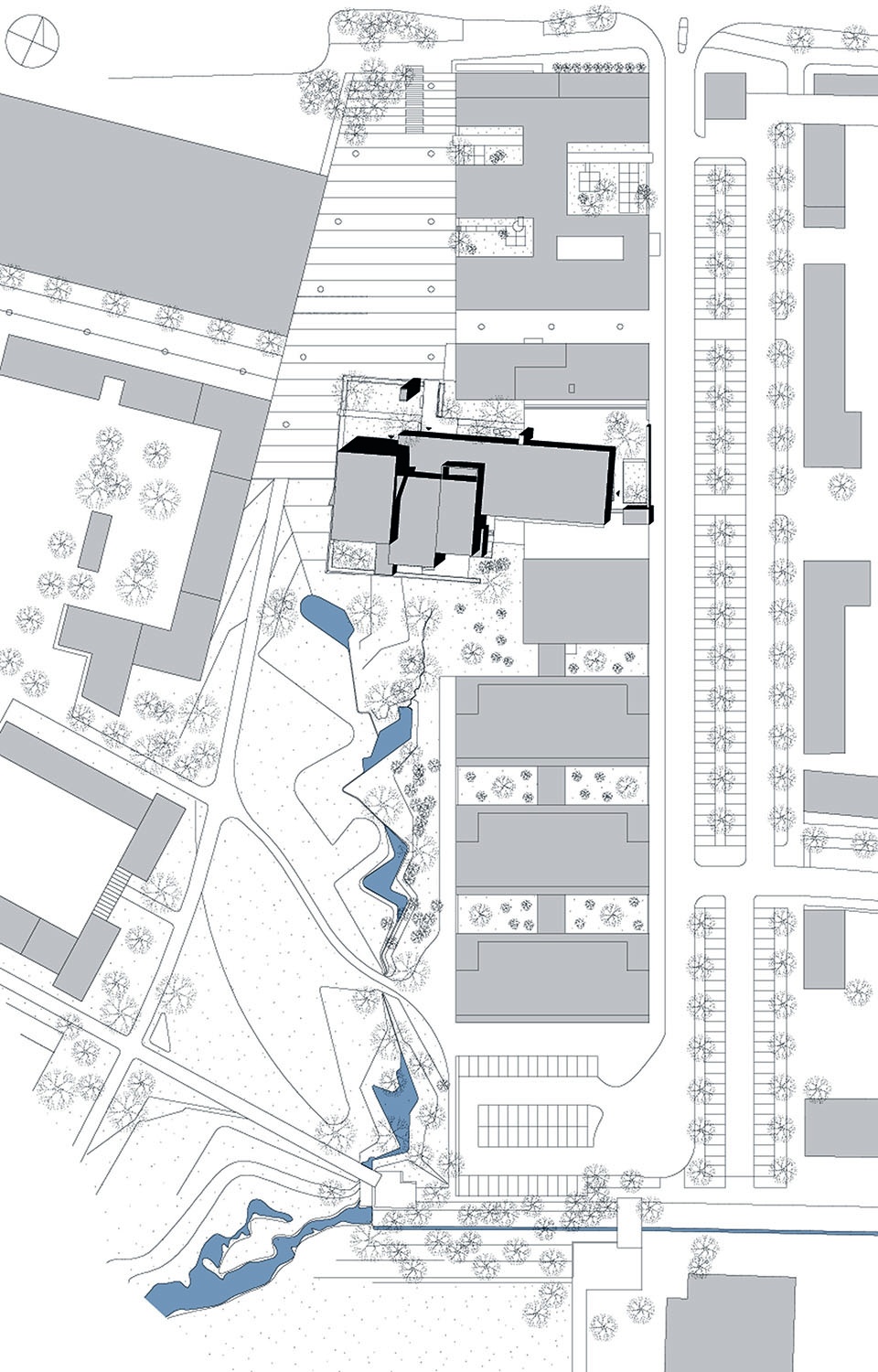 ▼总平面图,建筑连接区域东西两翼,master plan, building connecting the eastern and western parts of the district ©JKMM Architects