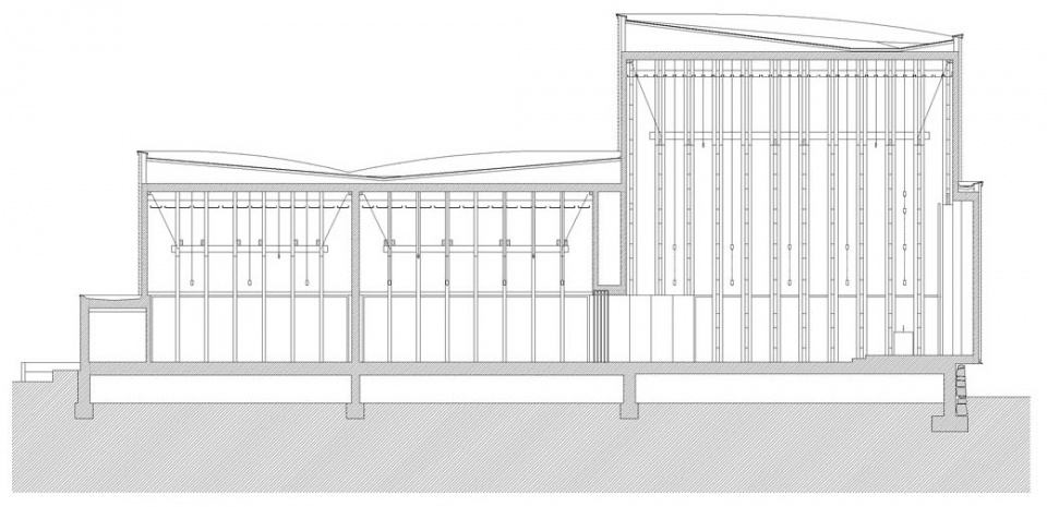 ▼木梁架典型剖面,typical section of the wooden beams ©JKMM ©JKMM Architects