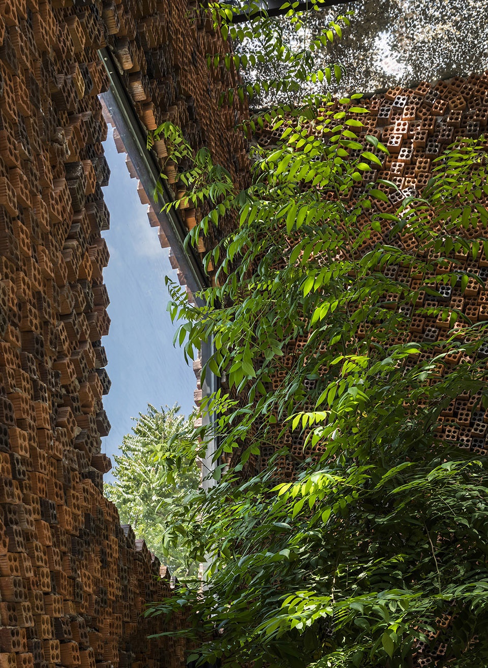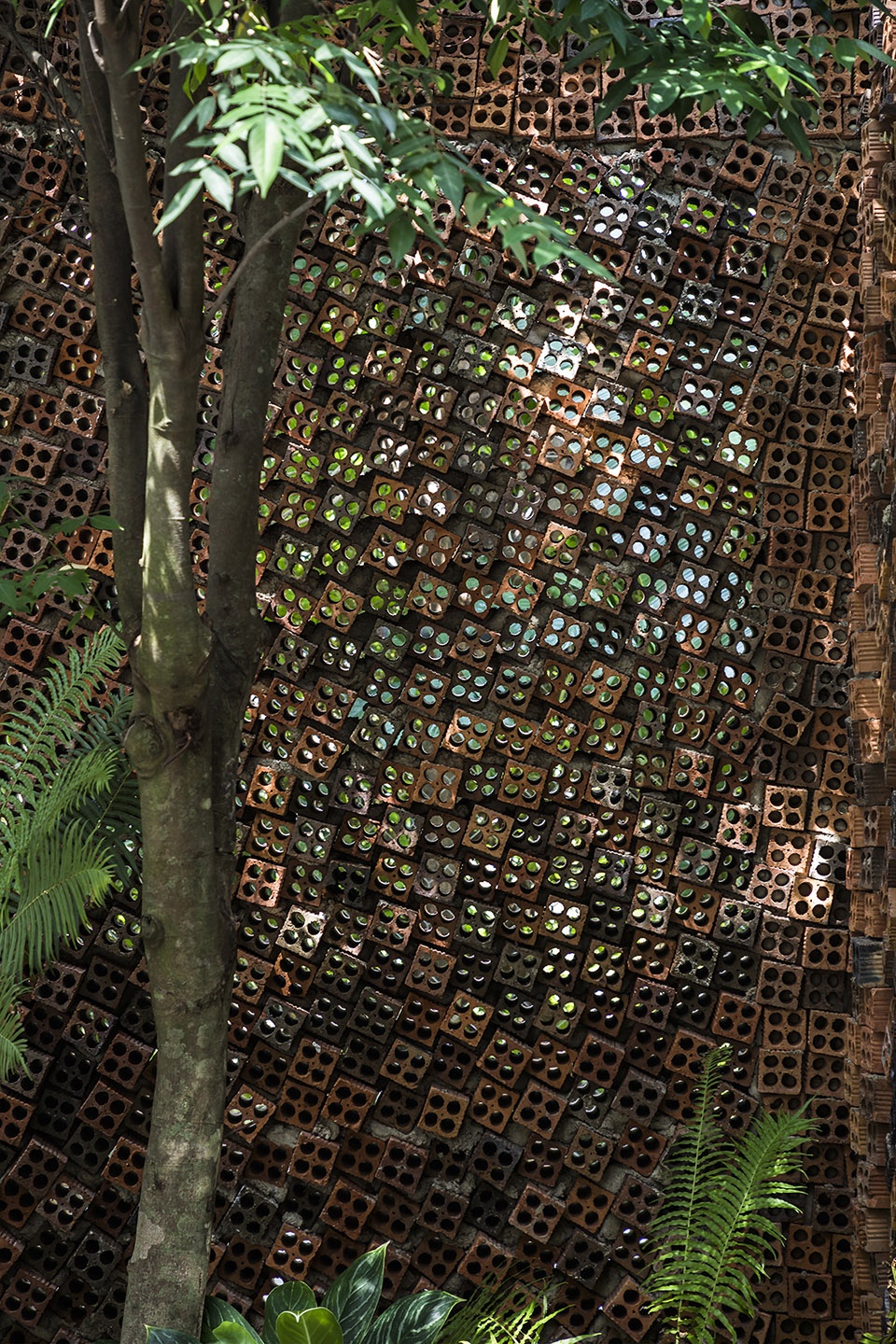 ▼可以呼吸的墙由空心砖块砌筑而成,the “breathing wall” was created by hollow bricks ©Hiroyuki Oki