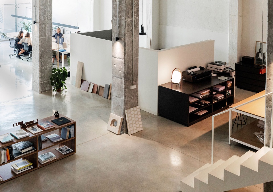 “很舒服的办公环境,也很真实,材料小样大大小小,桌上东西乱七八糟,但是不难看出。