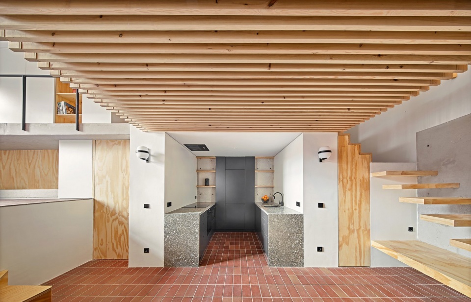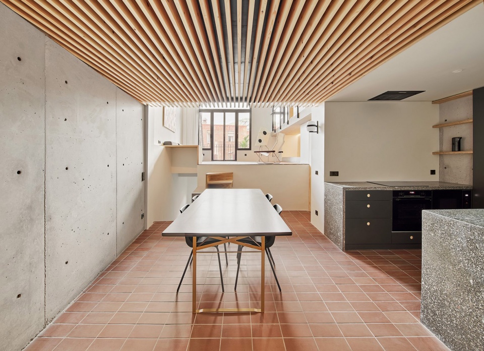 在巴塞罗那古埃尔公园附近一栋建于1924年的建筑中,有一套带两层半地下室的公寓,本次项目旨在对这套公寓进行整体改造。该房屋位于向西倾斜的地块上,可欣赏Tibidabo山的美景。原始建筑的状况极差,房间严重缺乏光线和自然通风,不同楼层之间的关系也非常散乱。地下室实际上已经废弃多年,只能通过室外楼梯才能进入。如此糟糕的状况在需要团队给出全面干预的同时,也为他们带来了令人兴奋的挑战:将困难转化为打造极具个性的独特住宅的机会。