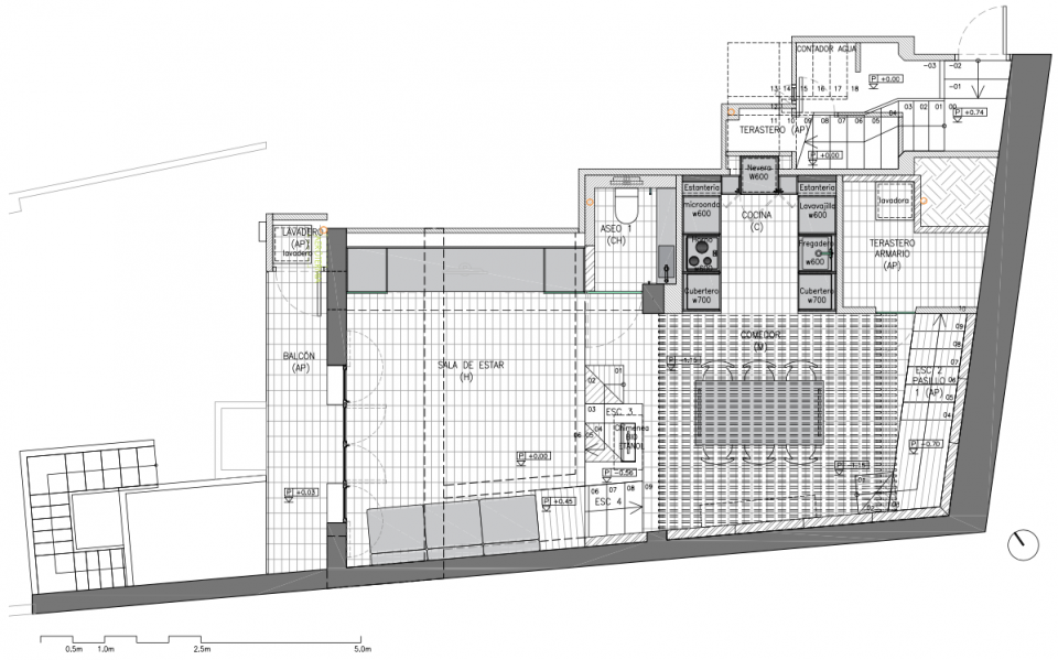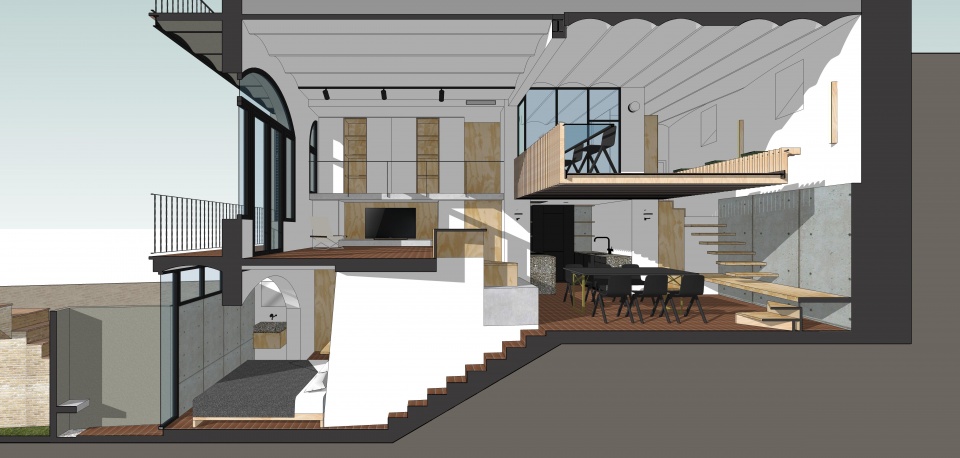 Project for the total renovation of a two-story semi-basement house in a 1924 building located near Park Güell, in Barcelona. The house is located in a sloping terrain with west orientation and views of the Tibidabo Mountain. The original construction was in very poor condition. The rooms were completely lacking in light and ventilation, and communication between the different floors of the building was complicated. The lower basement had been practically abandoned for years, and access was only possible via an outside staircase. This poor starting point required a comprehensive intervention. At the same time, it posed an exciting challenge: to transform the difficulties into the opportunity to achieve a unique home with a marked personality.