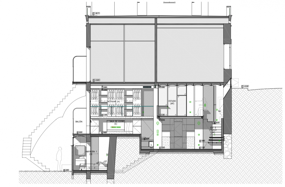 ▼地下室剖面图,basement section © Jose Hevia